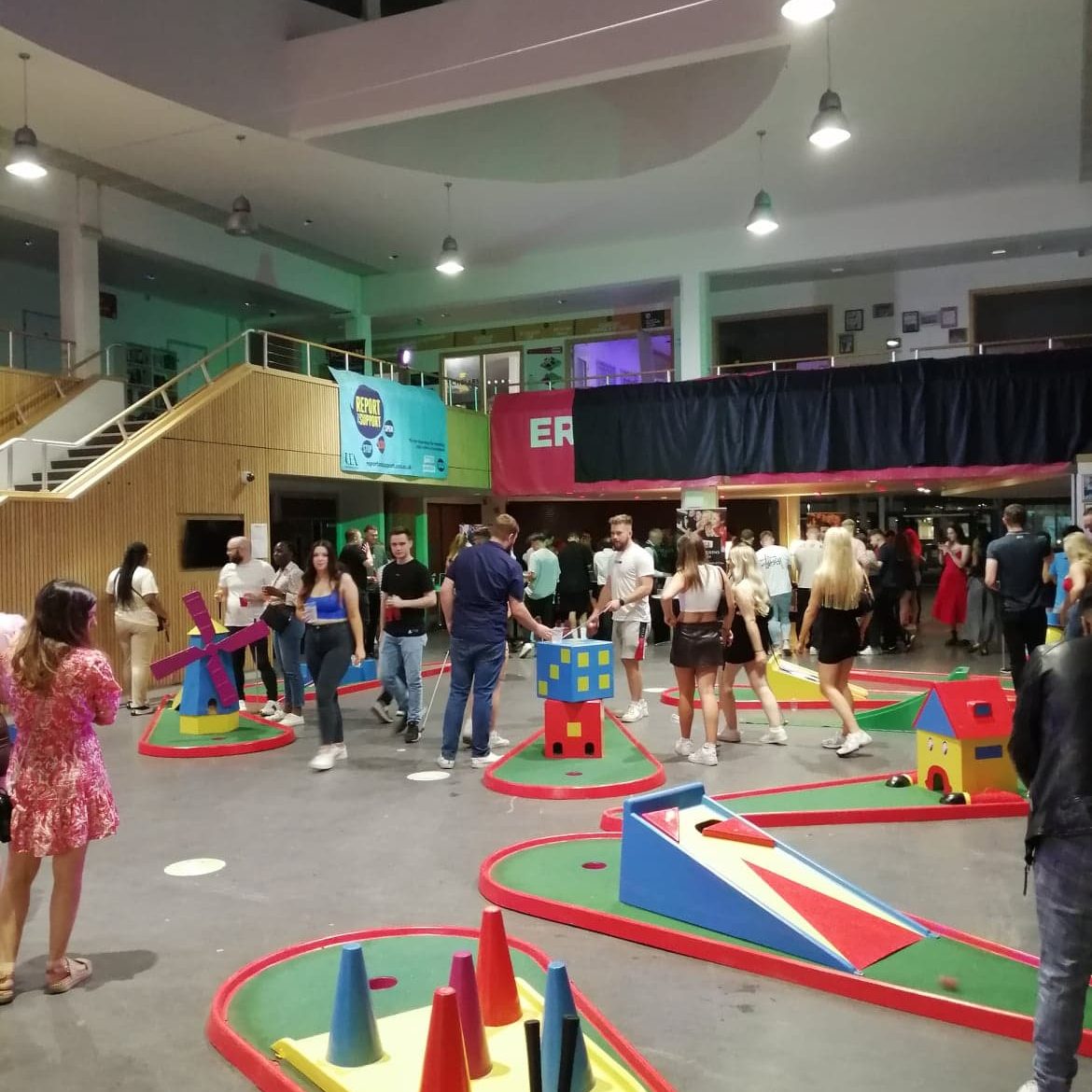 for ULTIMATE PACKAGE – Crazy Golf, 5 items chosen from our collections of Electronic Games, Side Stalls, Inflatables and other BIG IMPACT items (Skittle Alley, Adult/Child Curling)