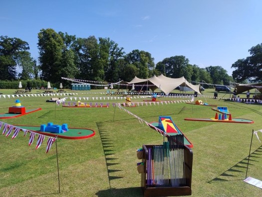 ยฃ495 for Crazy Golf 9 hole course, bespoke Golf Club and Golf Ball Holder, bunting and poles.
