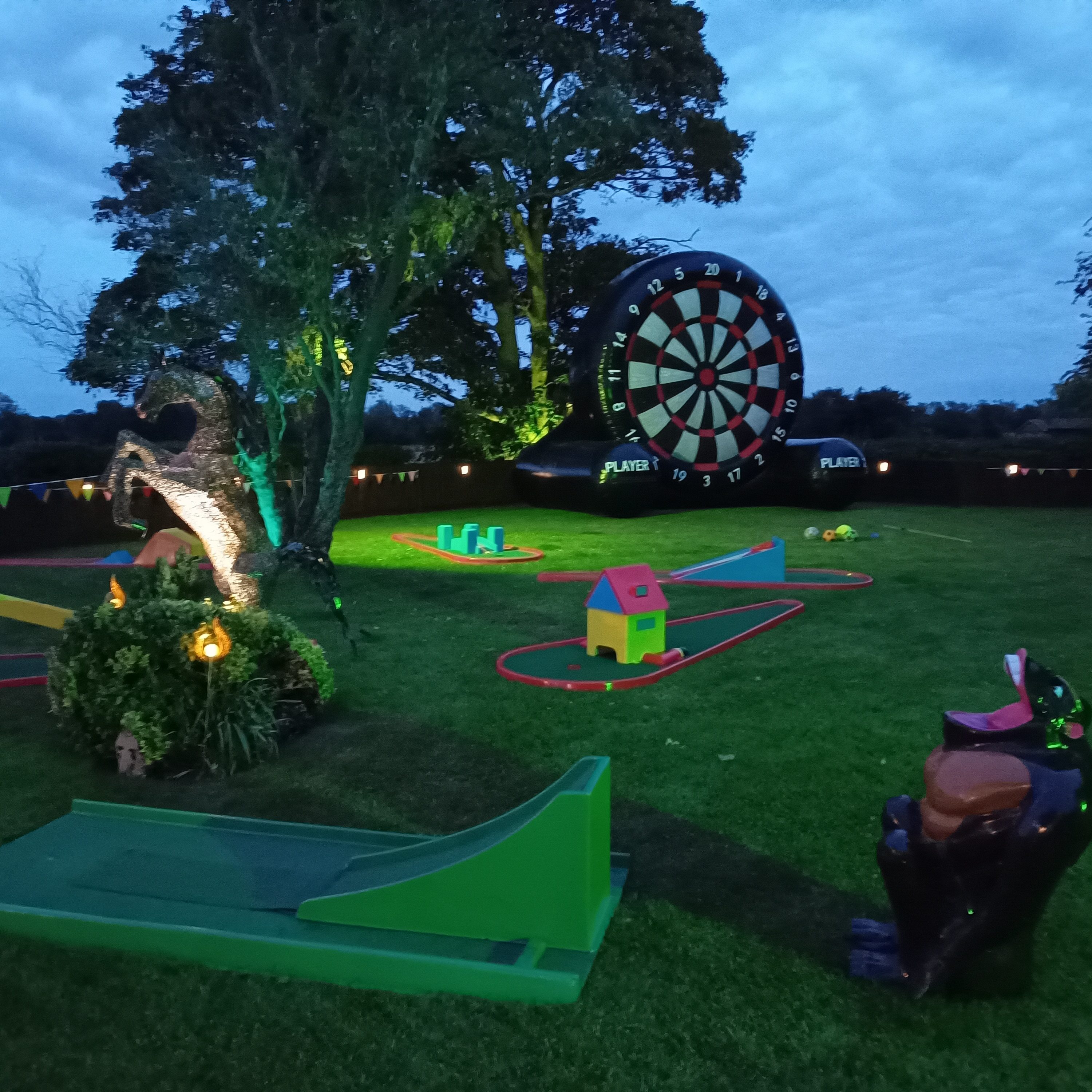 for Crazy Golf and 2 Inflatables such as Inflatable Basketball, Children’s Bouncy Castle or Inflatable Hoverball.