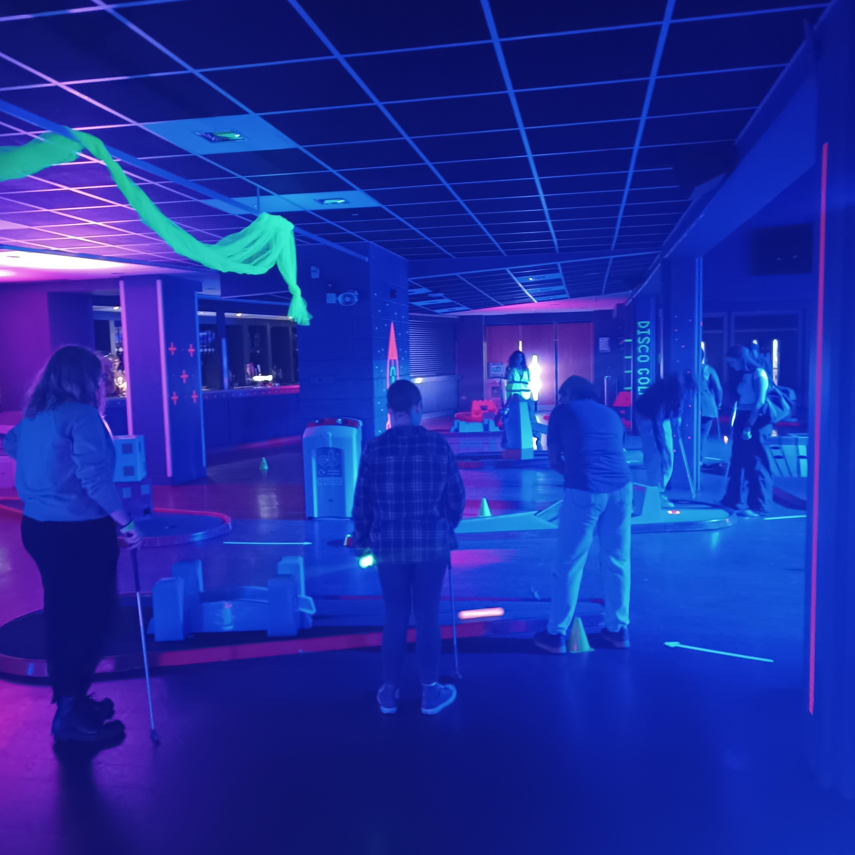 for UV Crazy Golf with light up golf ball – PLUS 3 chosen from our collections of Electronic Games, Side Stalls, Inflatables and other BIG IMPACT items (Skittle Alley, Adult/Child Curling)