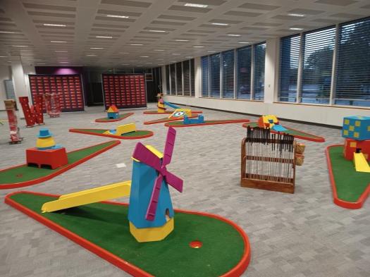 | College Induction Event to welcome students College Event (at any time of the year) University Freshers Fayre to welcome new students University Event (at any time of the year) | Crazy Golf and an assortment of any of our Games for Hire will definitely make for a memorable event. It will encourage students to mix and mingle, as well as being simple fun! |