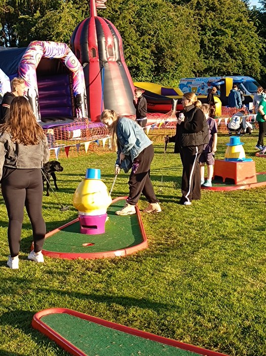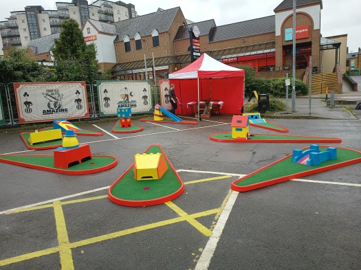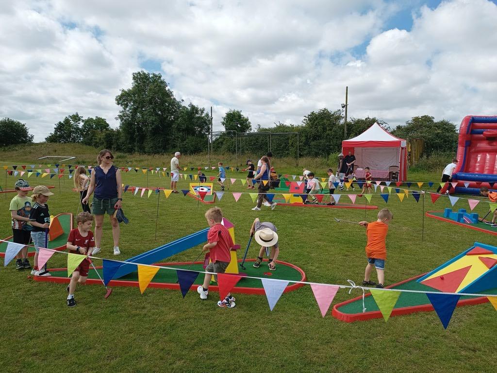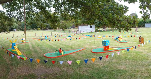 | School Fete & Fundraiser Village Fete Festival | Crazy Golf stands out on its own due to its bright colours and crazy obstacles. Children and adults always enjoy a game or two. Imagine pairing it with some of our other Traditional Games such as our High Striker, Soft Archery, Cornhole Toss, Giant Jenga and so much more… |